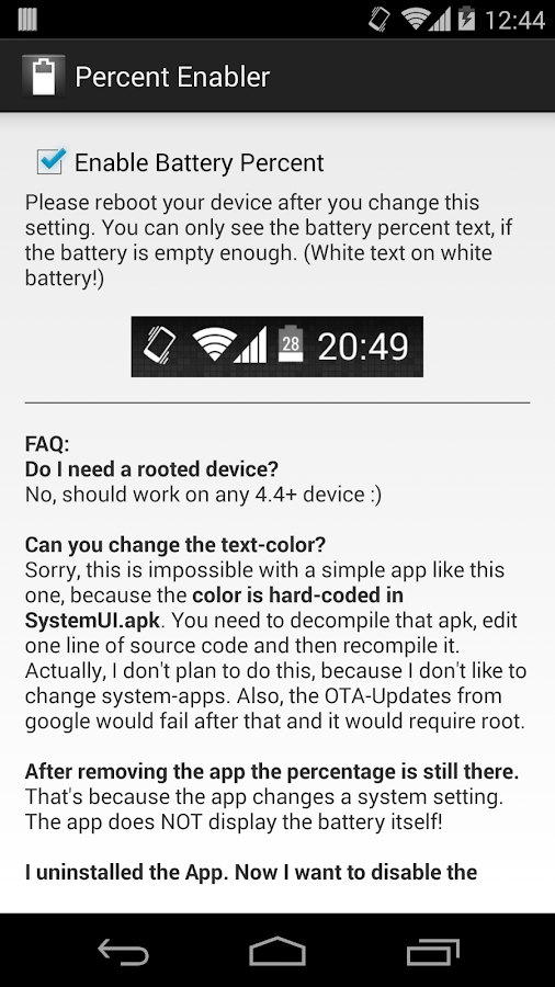 Muitas pessoas estão se sentindo perdidas em relação ao consumo de bateria nas versões do Android superiores ao Kit Kat. Algumas empresas, como Samsung, LG, Sony oferecem a opção de escolher a visualização de bateria em suas interfaces, porém, pra quem tem Android puro, essa função não vem embarcada no sistema.